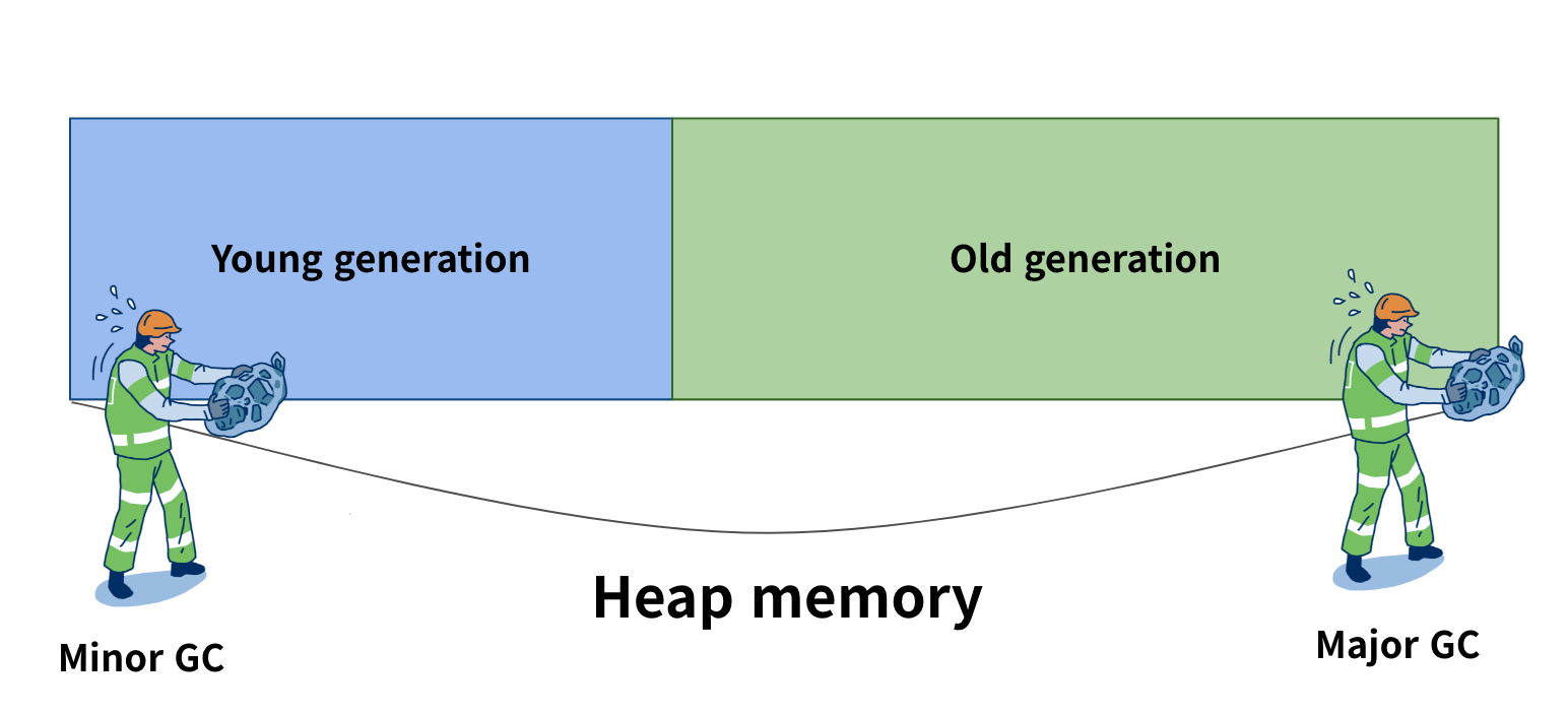 이 두 가지 특성 덕분에, JVM은 힙(Heap)을 두 영역으로 나눠 관리합니다.