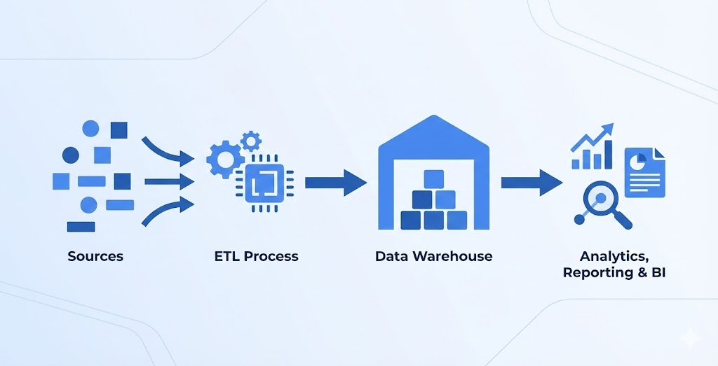 - 여러 시스템에서 데이터를 수집해 ETL/ELT로 정제 후 저장