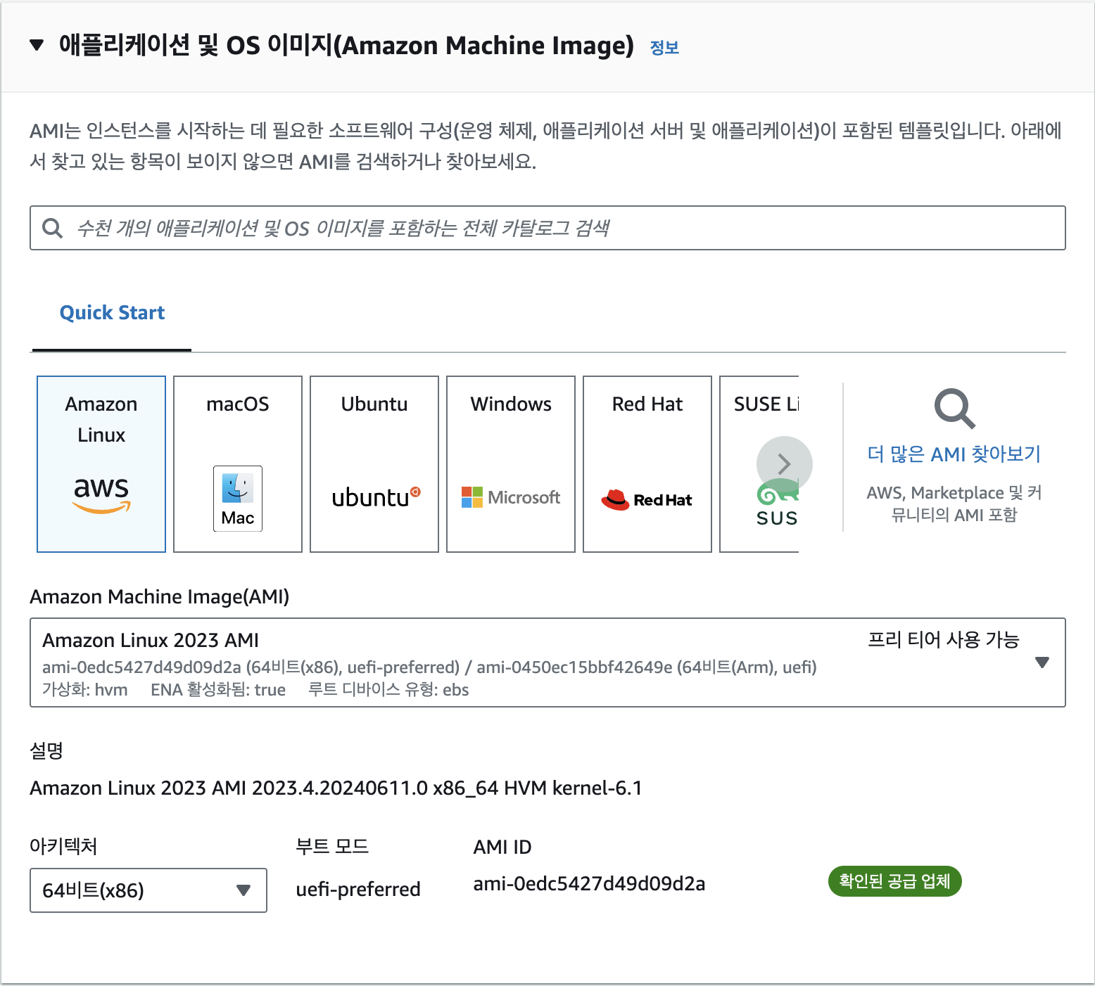 OS 선택: AMI 고르기